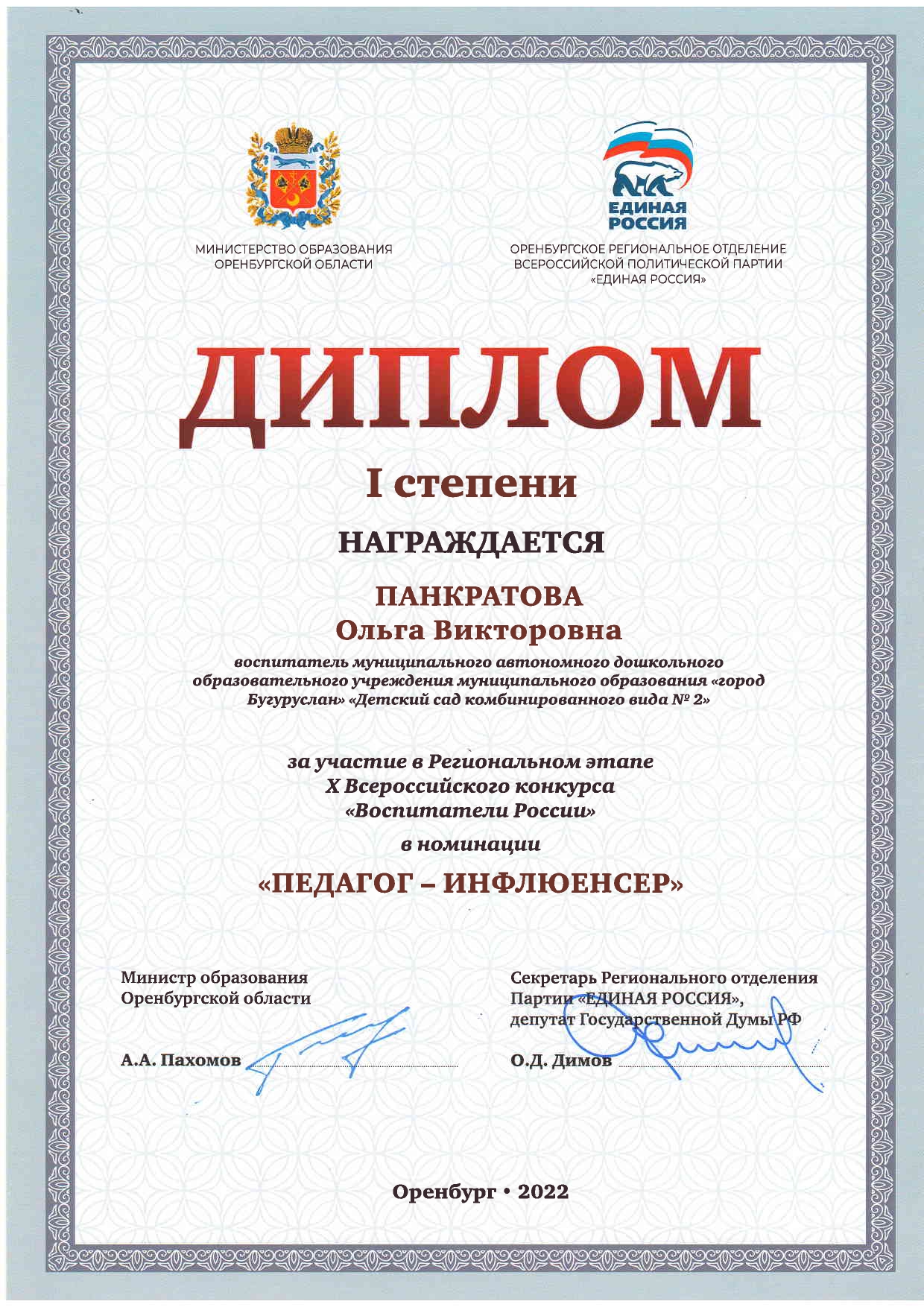 Диплом I степени |