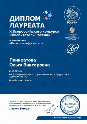 Победитель регионального этапа Х Всероссийского конкурса «Воспитатели России»